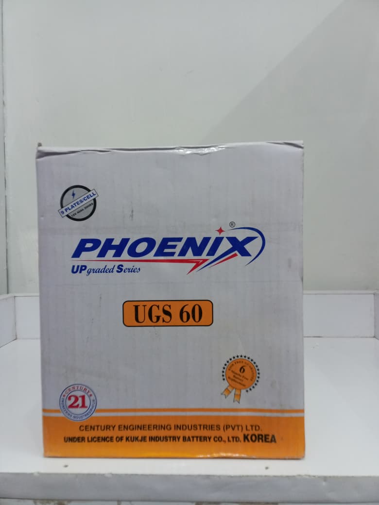 The Phoenix UGS 60 is a 12V / 40Ah dry-charged lead-acid battery designed to provide reliable starting power and dependable backup for small vehicles and light UPS systems. Built with 9 plates per cell, it delivers stable current output and durable performance for everyday automotive and backup use. Its rugged construction ensures long service life and consistent power delivery for compact cars and small backup setups.