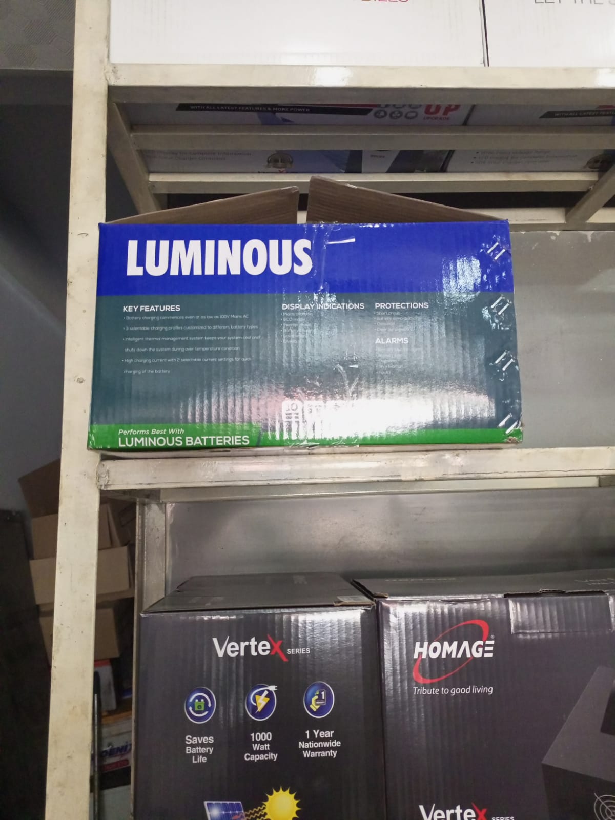 The Luminous 900VA is a compact home UPS inverter designed to provide reliable backup power for essential household appliances during outages. Engineered for efficient performance and stable output, it ensures uninterrupted power for lights, fans, and small electronics. Its durable build and user-friendly operation make it an ideal choice for everyday home use. Comes with a 1-year warranty for dependable performance and peace of mind.